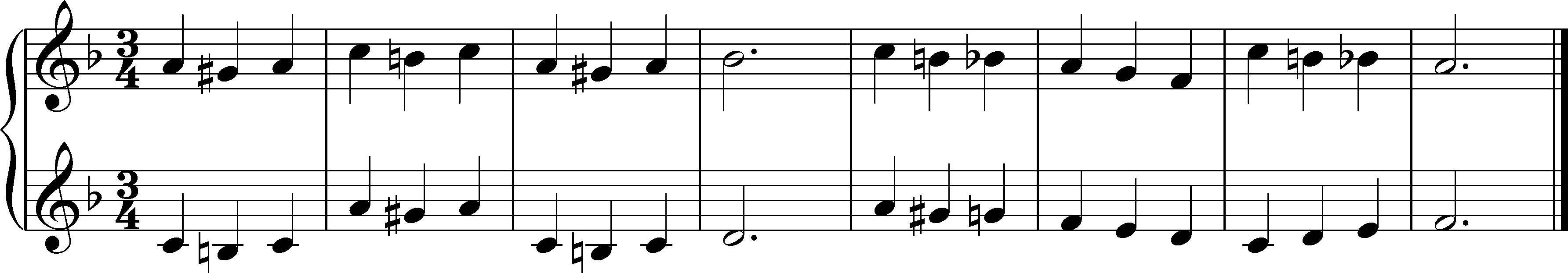Click the notation to reveal the answer. (Mobile users: click here to view a larger version of the starting pitch and click here to view a larger version of the answer.)